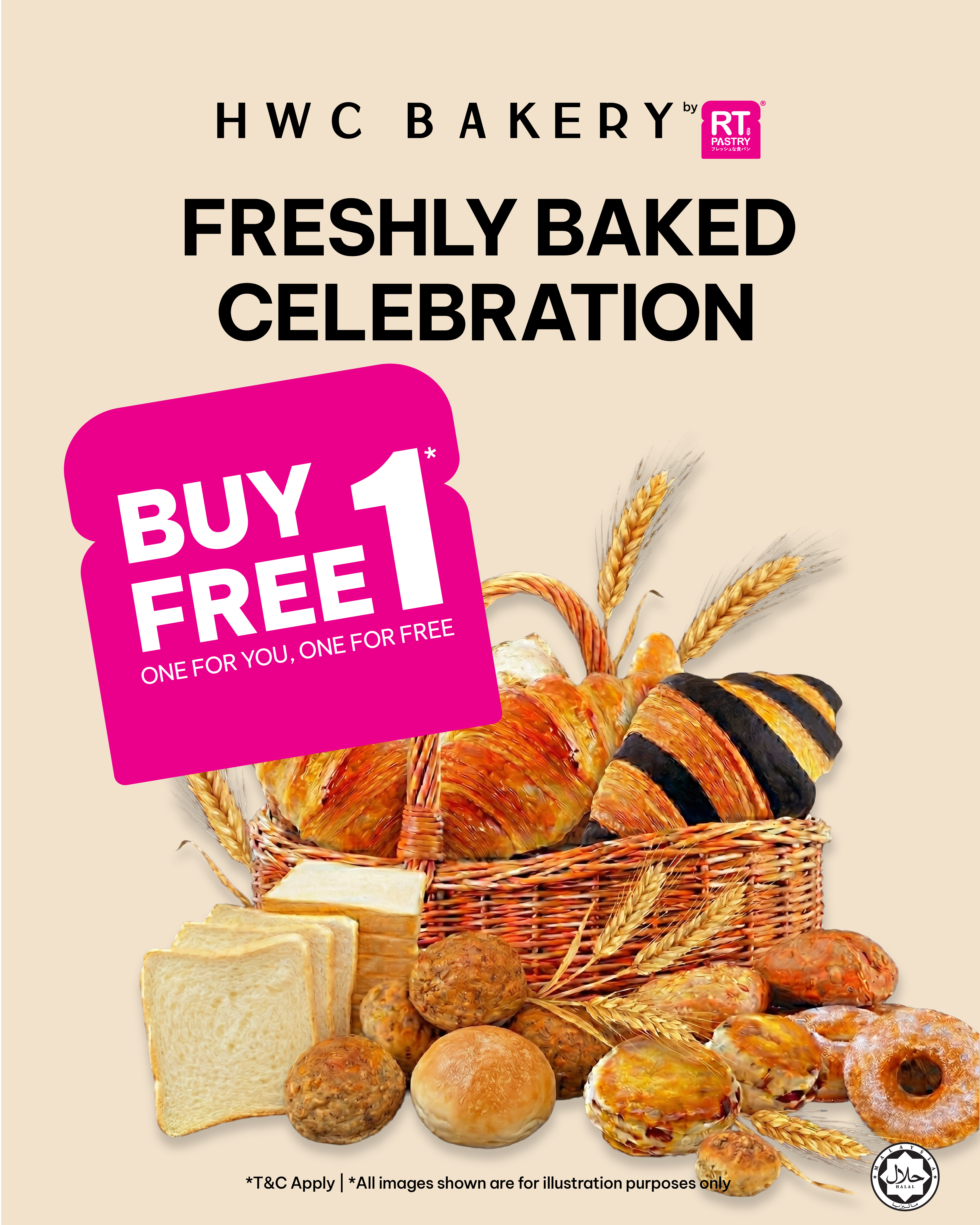 Purchase any RT pastry and add a handcrafted HWC COFFEE beverage for RM6.90.